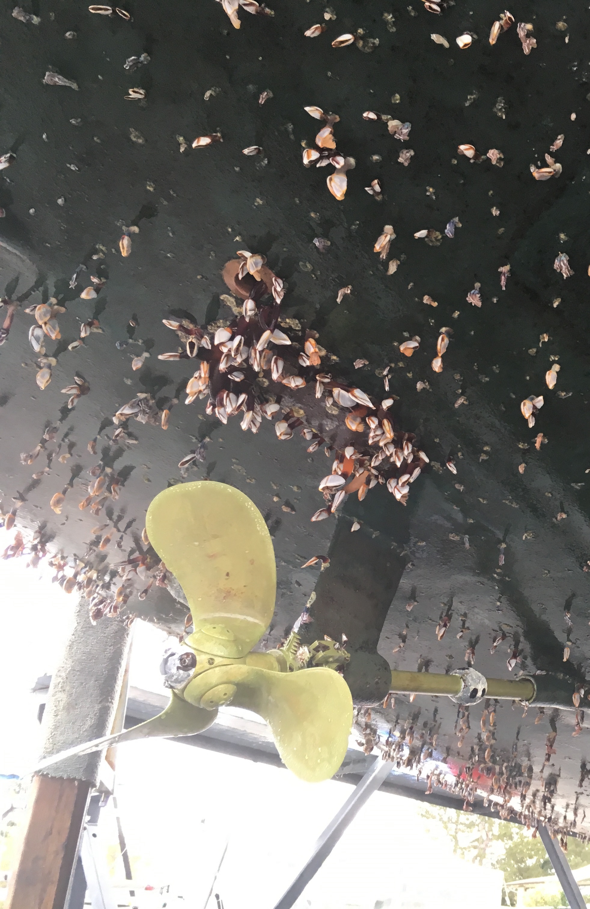 Nereida's Propspeed-coated propeller and shaft after the journey, free of marine growth