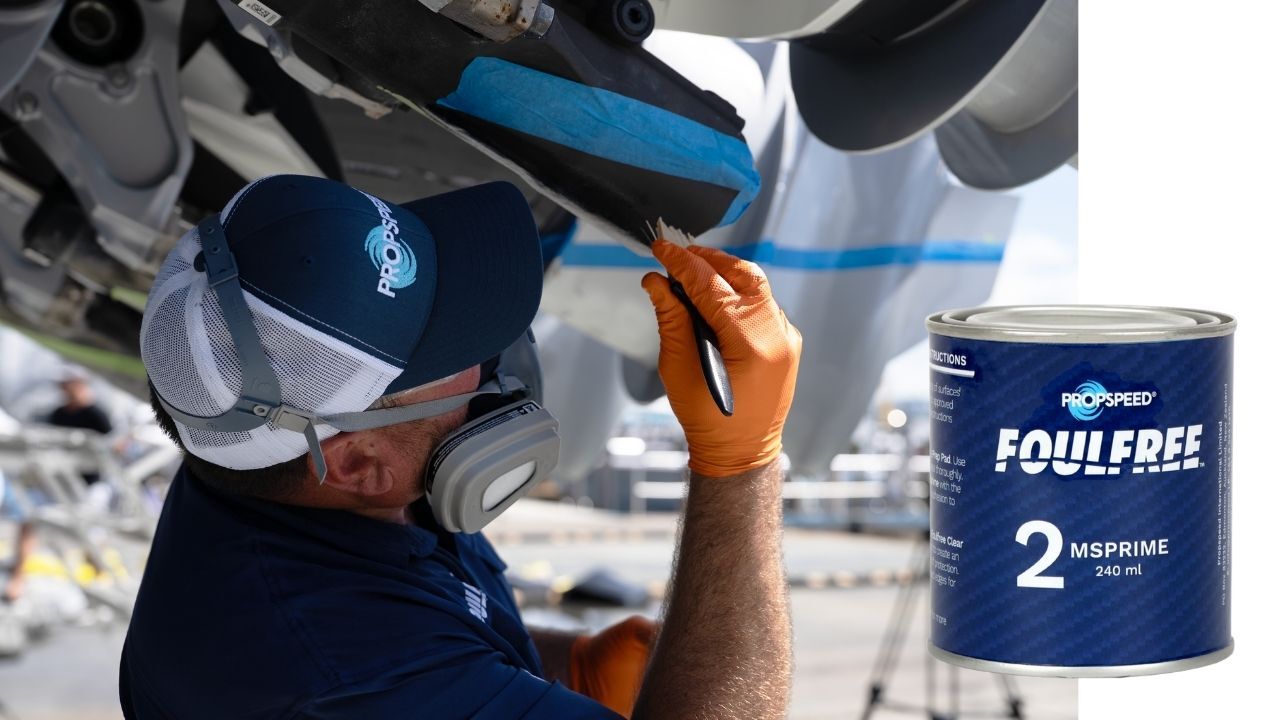Allow to dry for a minimum of 10 minutes (no more than 30 minutes) before applying the Foulfree Clear Coat to avoid contamination of the MSprime layer.