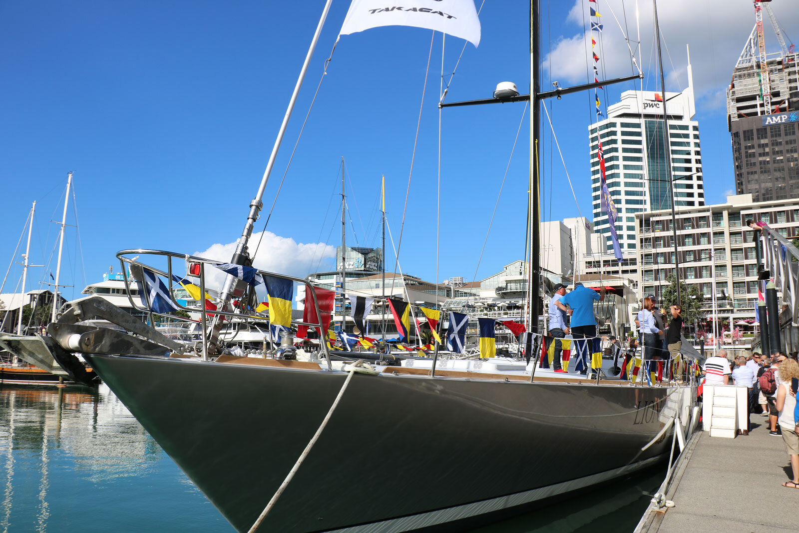 After nearly two years, Lion New Zealand is safely back in the water after the completion of a major million-dollar refit. Relaunched on March 11, 2019 by Yachting Developments in Hobsonville, Auckland, she then cruised to nearby Viaduct Harbour for her relaunch celebration. At the event, Lion New Zealand was rechristened by Bianca Cook of Yachting Developments and Michelle Khan and Evelien Van Vliet of the New Zealand Sailing Trust.